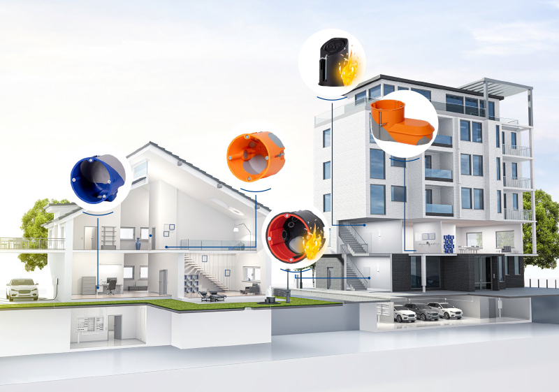 W rozwiązaniach F-TRONIC znajdują się też puszki przeciwpożarowe oraz wiatroszczelne, które odpowiadają na rosnące wymagania w zakresie ochrony przeciwpożarowej i efektywności energetycznej budynków. Produkty te ograniczają rozprzestrzenianie ognia i dymu oraz zapobiegają niekontrolowanym stratom ciepła, wspierając tworzenie bezpiecznych i komfortowych przestrzeni użytkowych.